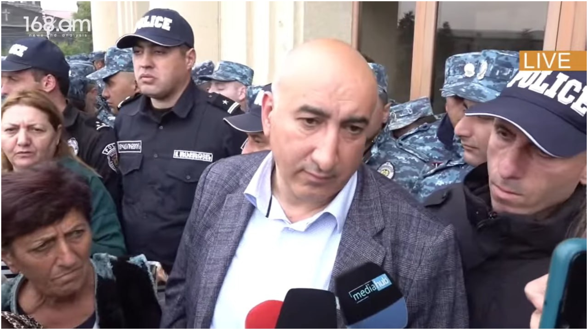 Հրմշտոց, գերլարված իրավիճակ Գյումրիի քաղաքապետարանի գլխավոր մուտքի մոտ